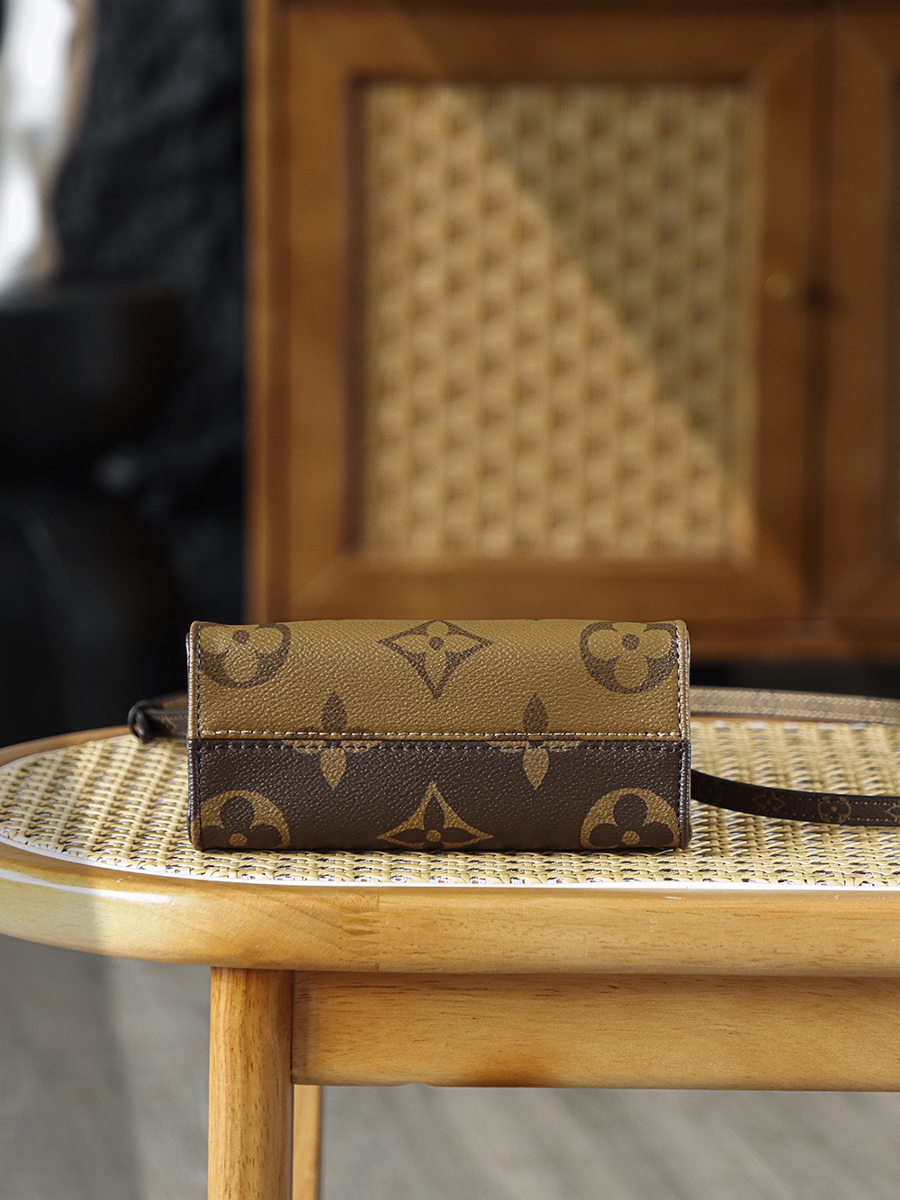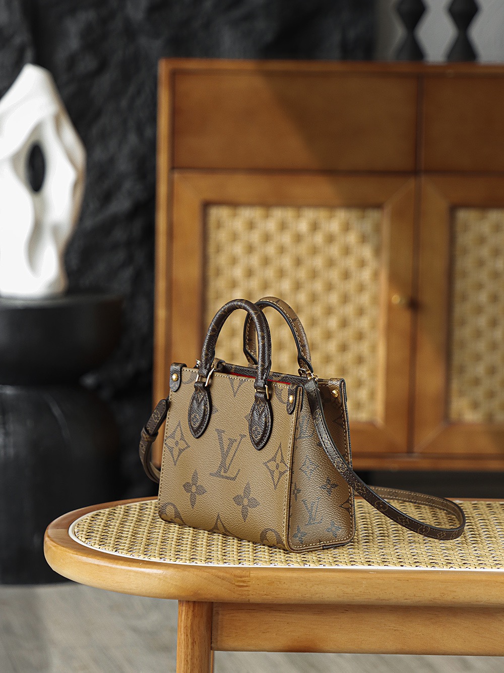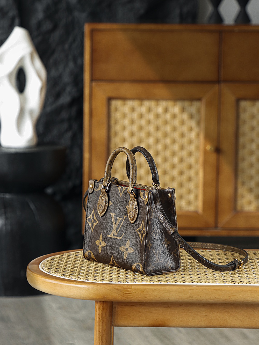 ONTHEGO BB — это редкая и невероятно стильная мини-версия культовой модели. Сочетание классического монограмного рисунка и карамельного инвертированного окраса придаёт сумке свежий, современный вид. Маленькая, но вместительная — идеальный выбор для тех, кто ценит стиль и функциональность.