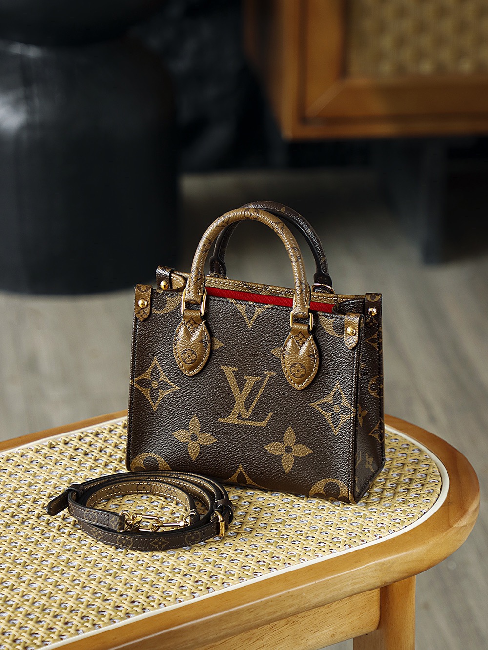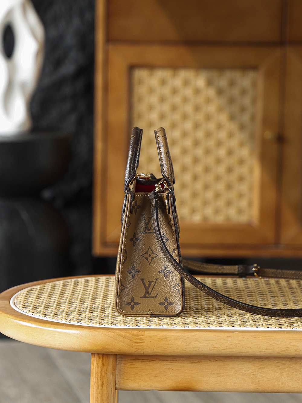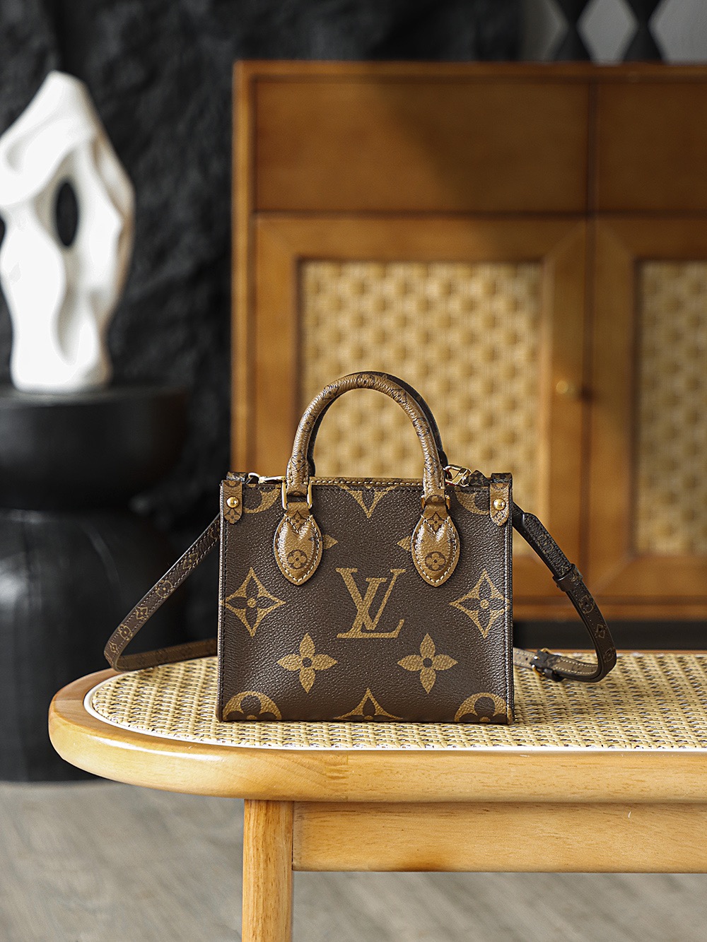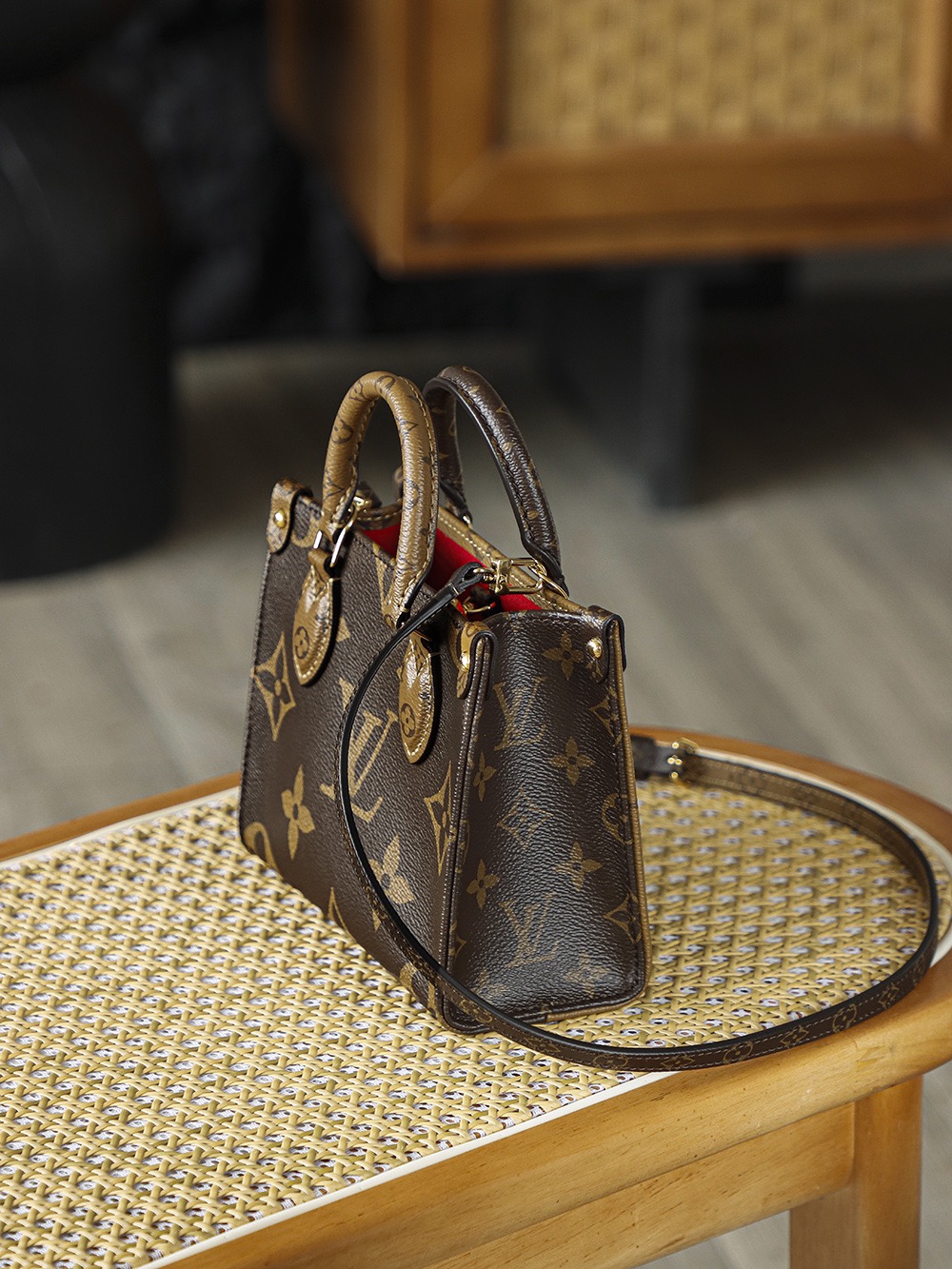 ONTHEGO BB — это редкая и невероятно стильная мини-версия культовой модели. Сочетание классического монограмного рисунка и карамельного инвертированного окраса придаёт сумке свежий, современный вид. Маленькая, но вместительная — идеальный выбор для тех, кто ценит стиль и функциональность.